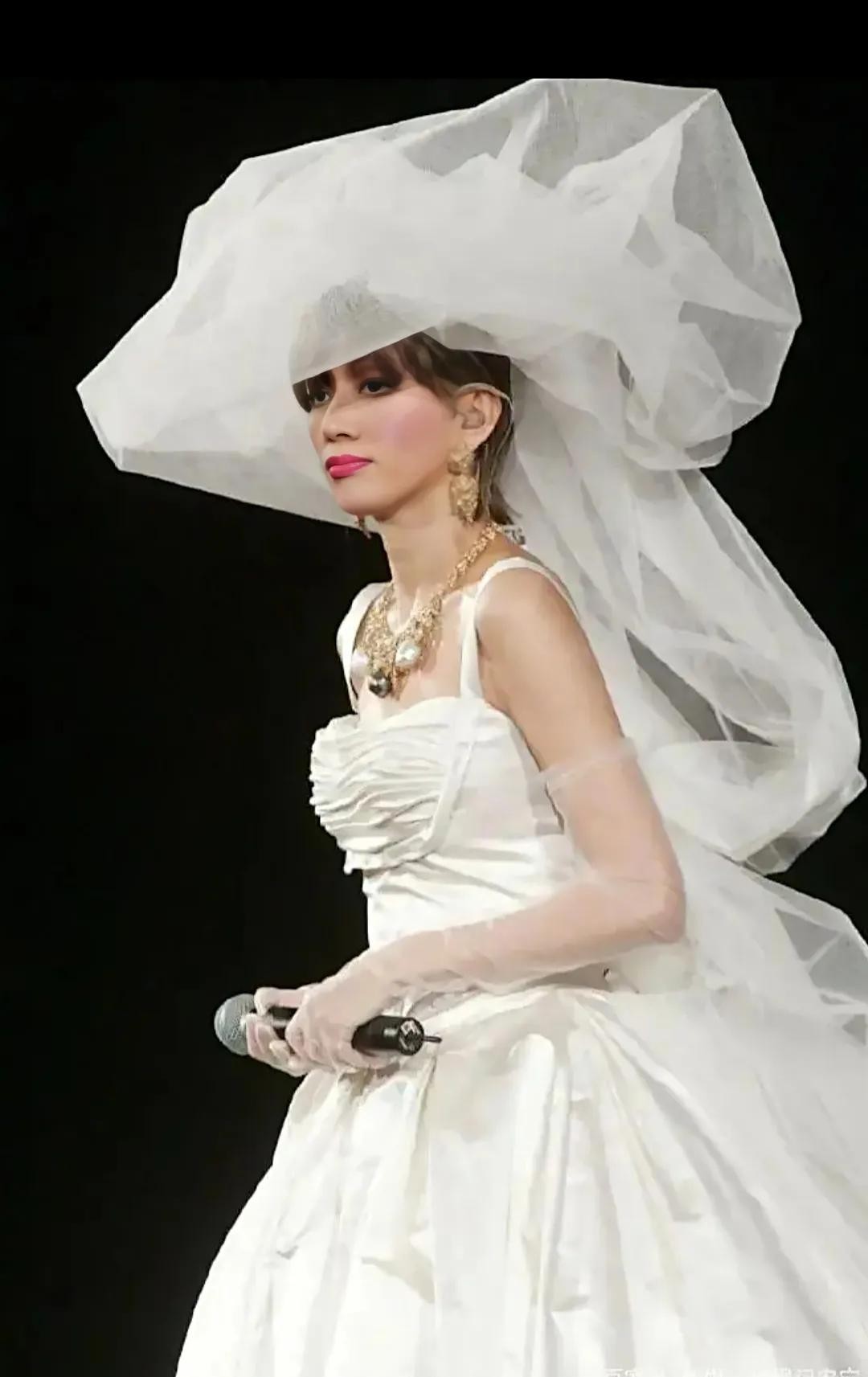 梅艳芳穿着洁白的婚纱步入舞台正中。