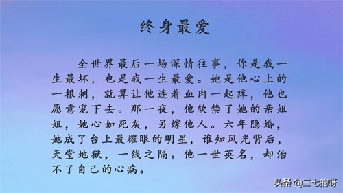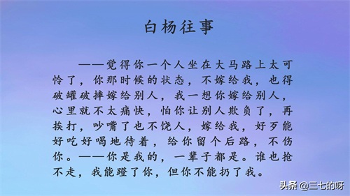 今天推荐的3本小说都是很经典的文,长宇宙《白杨往事》,玄默《终身最爱》,十四郎《斩春》,男主都很深情,很好看!