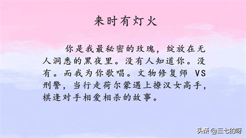 推荐空空如气,板栗子,吉祥夜的小说,强推《来时有灯火》