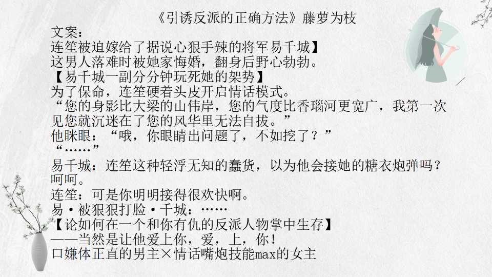 八、《引诱反派的正确方法》藤萝为枝 21万字 BG 完结