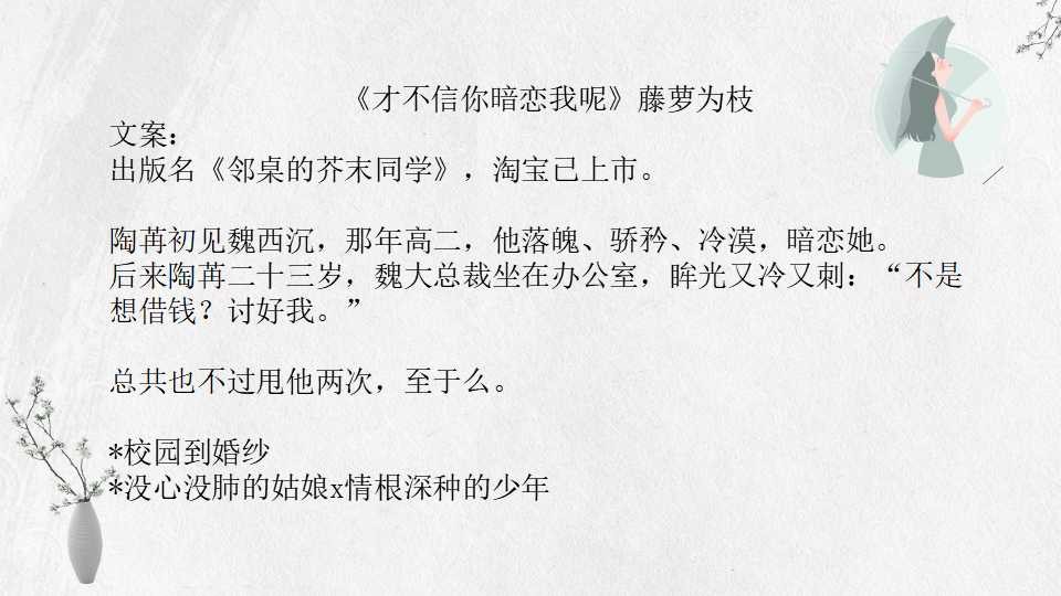 九、《才不信你暗恋我呢》藤萝为枝 20万字 BG (又名《完结邻桌的芥末同学》)