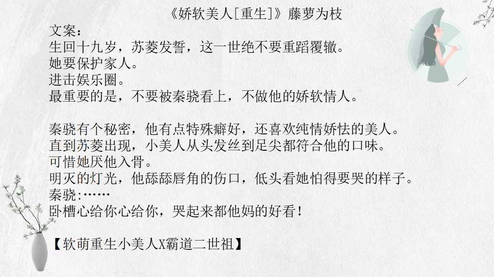 三、《娇软美人[重生]》藤萝为枝 28.3万字 BG 完结