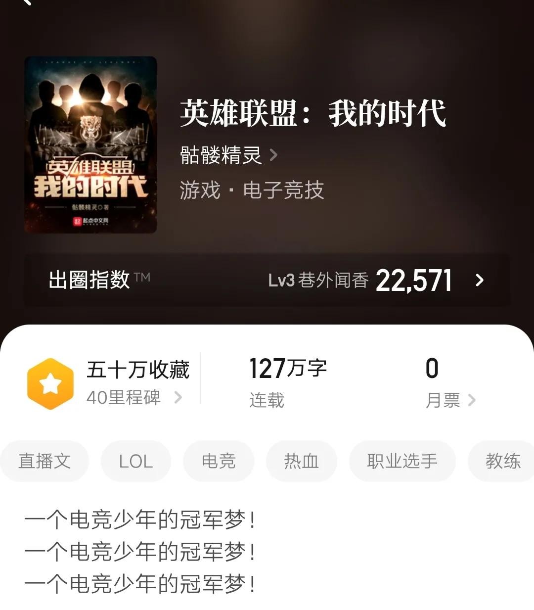 白金作家骷髅精灵一九年完本的作品,一个电竞少年的冠军梦!英雄联盟官方授权小说。
