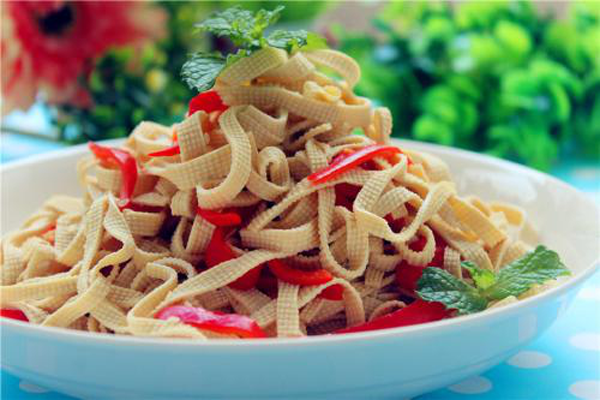 千张其实就是我们平时吃麻辣烫经常能够看到的小吃,义乌的做法是将它拿来清炒辣椒,这样子吃起来味道很香,并且口感也是很好。