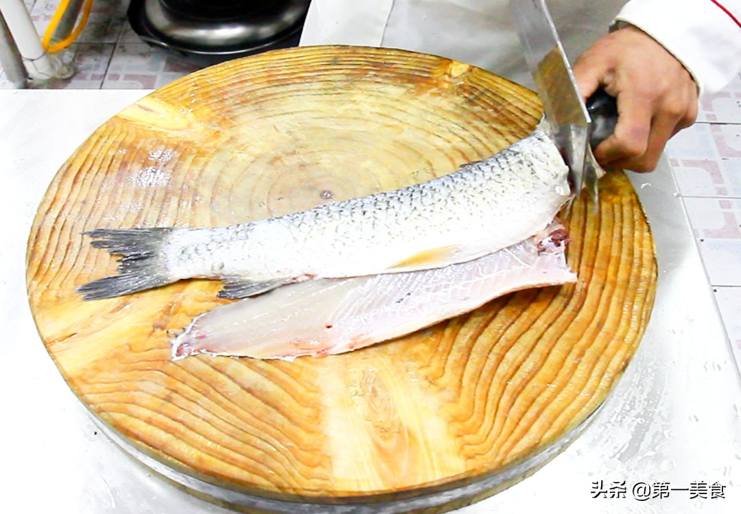 用刀先片下鱼肉,把鱼骨斩成段,片去鱼刺,如果不会摆弄的,可以让市场的卖鱼的给你处理好,然后再把鱼身片成鱼片。