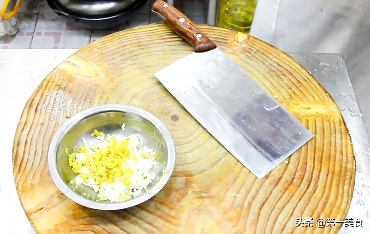 准备大蒜一把,拍扁后切成碎粒备用。