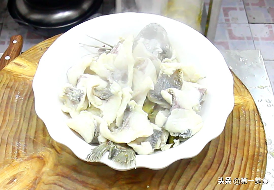 把鱼片和鱼头鱼尾鱼骨分开放置,先把鱼片用水多冲洗几次,同时使鱼片吸收水分,然后挤一下表面的水分。