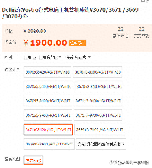 这是网上同型号电脑,CPU也是G5420,内存是4G,价格1900元。