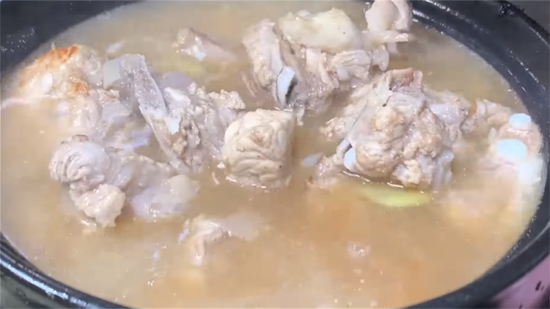 5、排骨煮好后,盛出来放到砂锅里面,因为这时候的排骨还没煮软烂,所以我们要盖上盖子,转为小火焖90分钟左右。