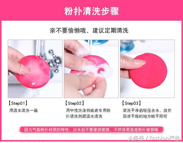 气垫粉扑除了掌握清洗方法不好之外,还要注意清洗的频率。过度频繁清洗粉扑很容易不好导致粉扑变得硬邦邦,其亲肤性会下降,不利于上妆。