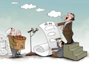 在现实生活中,或多或少存在像罗应光这样大搞“走秀式”调研、严重吞噬调研严肃性和功效性的现象。他们要么为调而调、要么调而不研、要么研而不实。比如,有的走马观花、蜻蜓点水,满足于听一听、转一转、看一看,调研浮在表面、流于形式;有的结论在前,提前定好条条框框,调研按需求证,搞所谓的事先安排;有的避重就轻,专门找问题少的地方调研,矛盾多的地方少去或者不去;有的挑肥拣瘦,已有的、成熟的调研课题趋之若鹜,全新的、挑战性的课题“门可罗雀”;还有的搞“拿来主义”,照抄照搬其他地方调研材料……