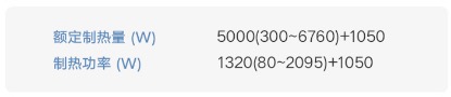 上图就是一台空调的参数:热泵(空调)功率1350W,对应制热量是5000W;电辅热功率1050W,对应制热量也是1050W——这还是因为没有考虑损坏,所以按照100%转化填写的。