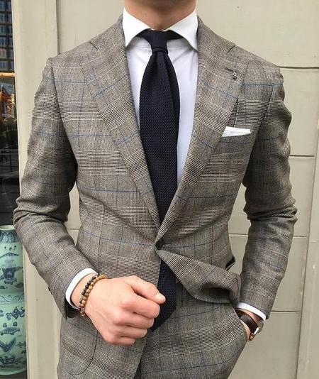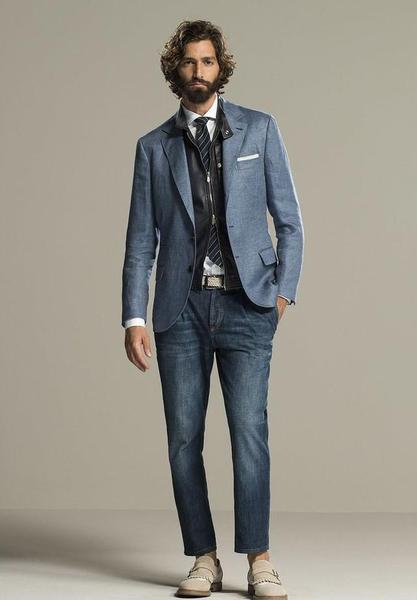 休闲西装通常以 单独的上衣出现,也可以采用不同颜色材质的西裤进行搭配