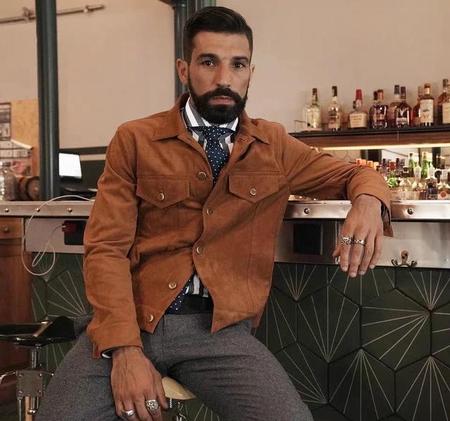 工装常以耐磨实用的麂皮也面料 剪裁宽松 自然保证了 运动顺畅 颜色也多才用深绿色