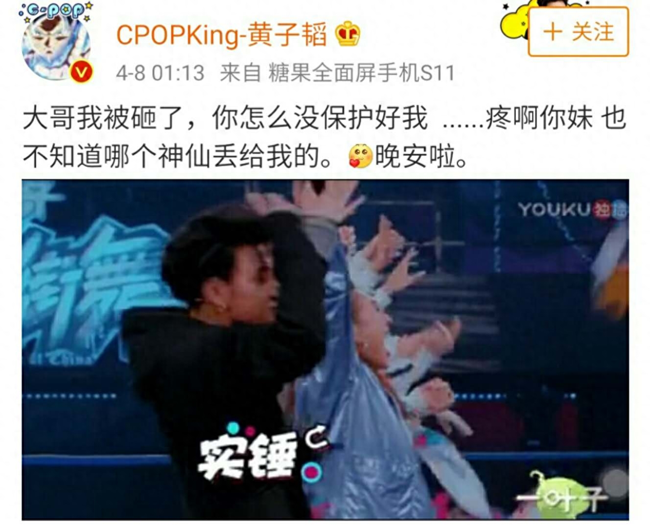 还有,这一期观众往场上丢毛巾投票时砸到了黄子韬,韬韬委屈巴巴地说“大哥我被砸了,你怎么没保护好我”。