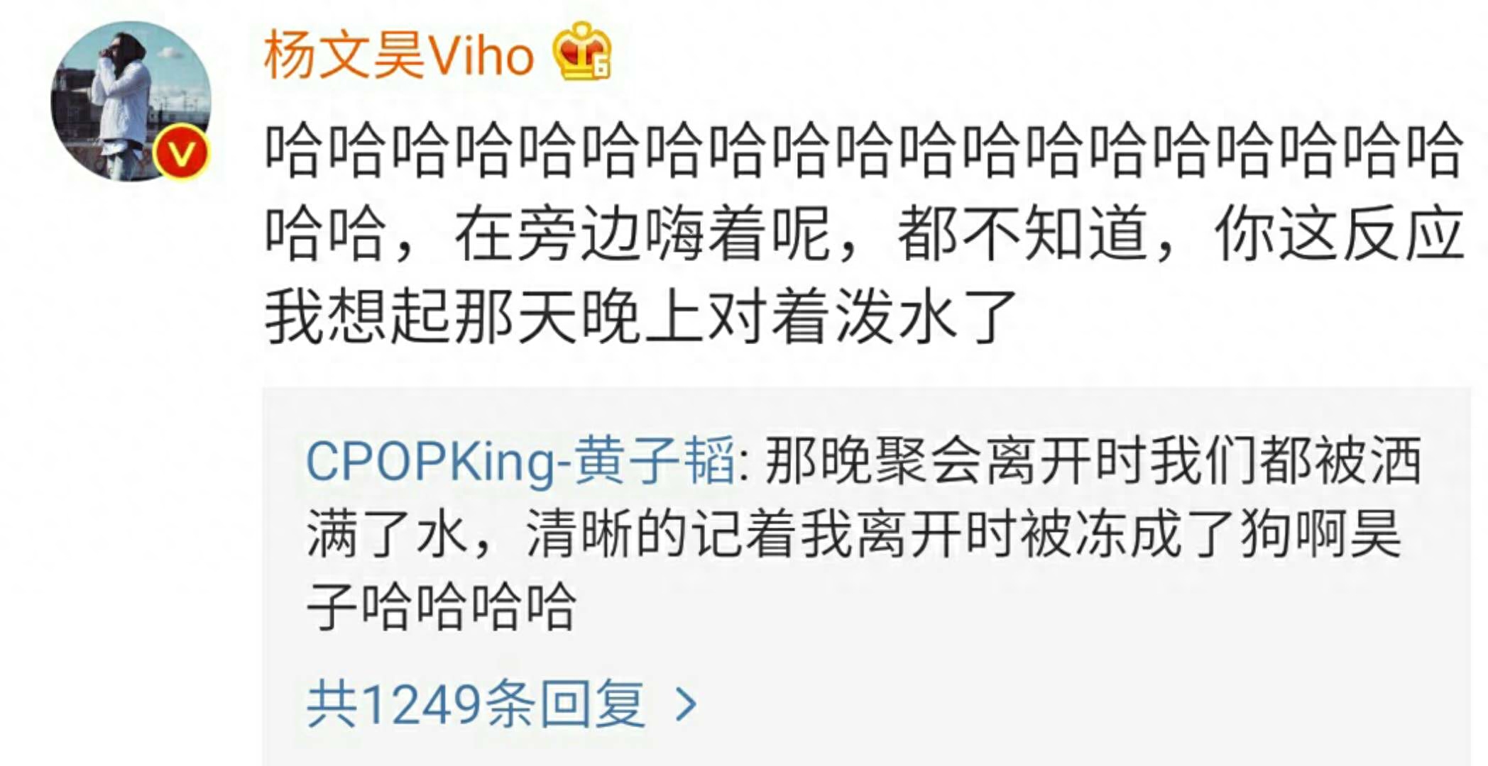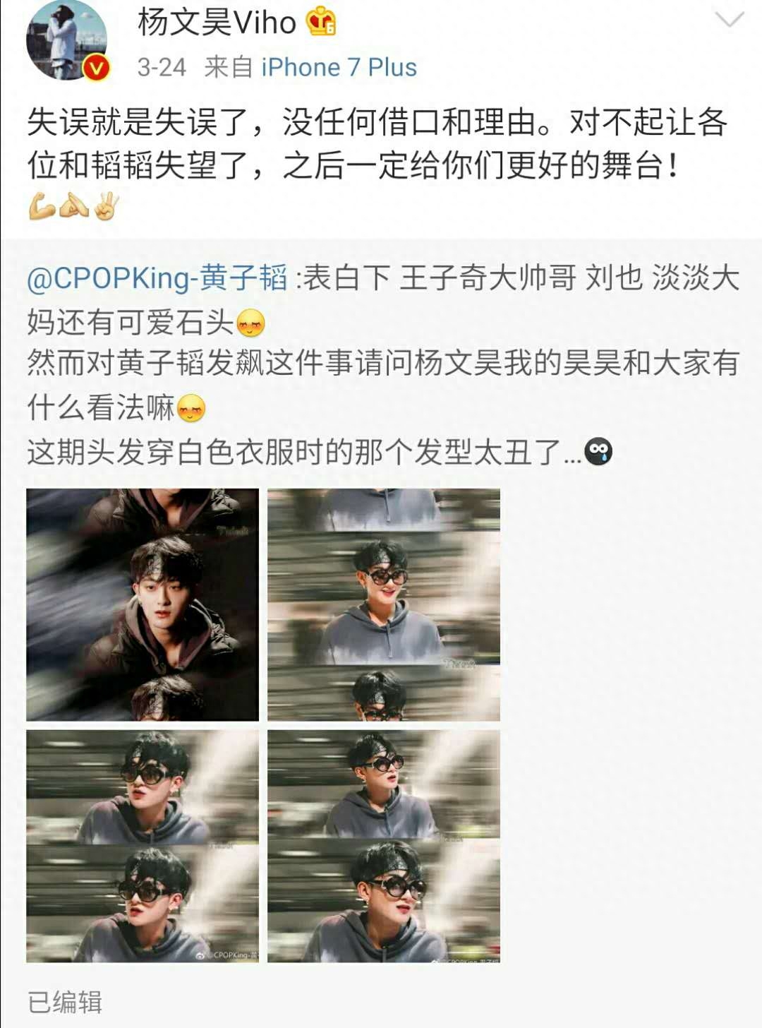 上一期节目里播出的时候,杨文昊发了一条微博说跟黄子韬讲“没人选你啊”就是在逗他。要不要这样子啊!多来几个这样的回合好吗?
