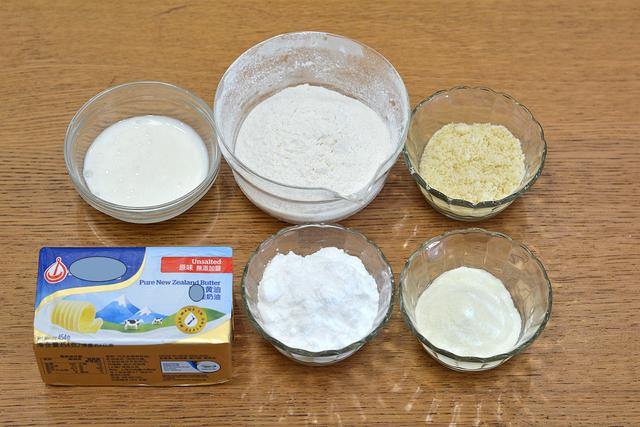 【材料好喝】 无盐黄油100克酸奶,糖粉70克,酸奶可以做什么饮品,原味酸奶55克,奶粉20克,低筋面粉甜品100克,杏仁粉20克