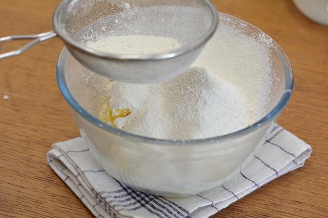 6. 面粉和奶粉筛入黄油好喝糊中烘焙;