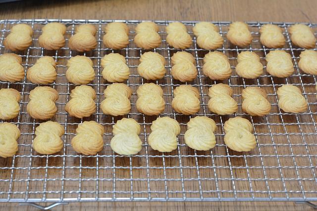 12. 曲奇稍晾一会儿,变硬取出,凉后入盒保存蛋糕。