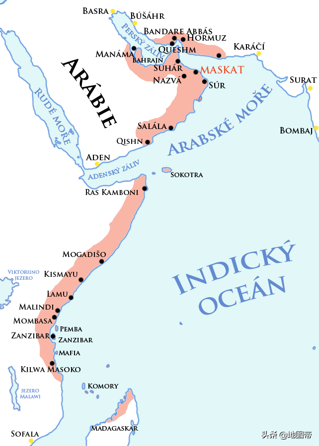 公元1749年,艾哈迈德·赛义德建立起阿曼的赛义德王朝,其疆域不仅包括阿拉伯半岛南端,还跨过曼德海峡占据了今天非洲东部的索马里、桑给巴尔一带。