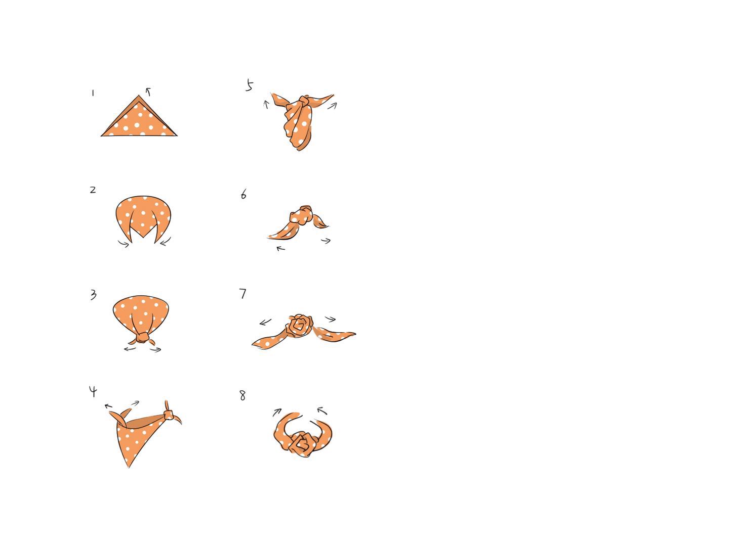1.将方巾对角线对折,呈现三角形