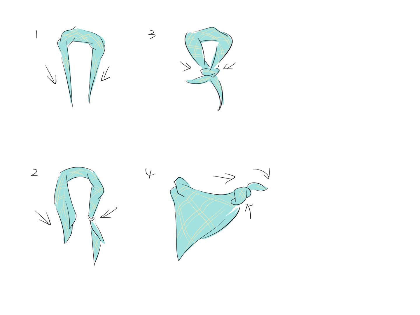 2.将方巾挂在脖子上