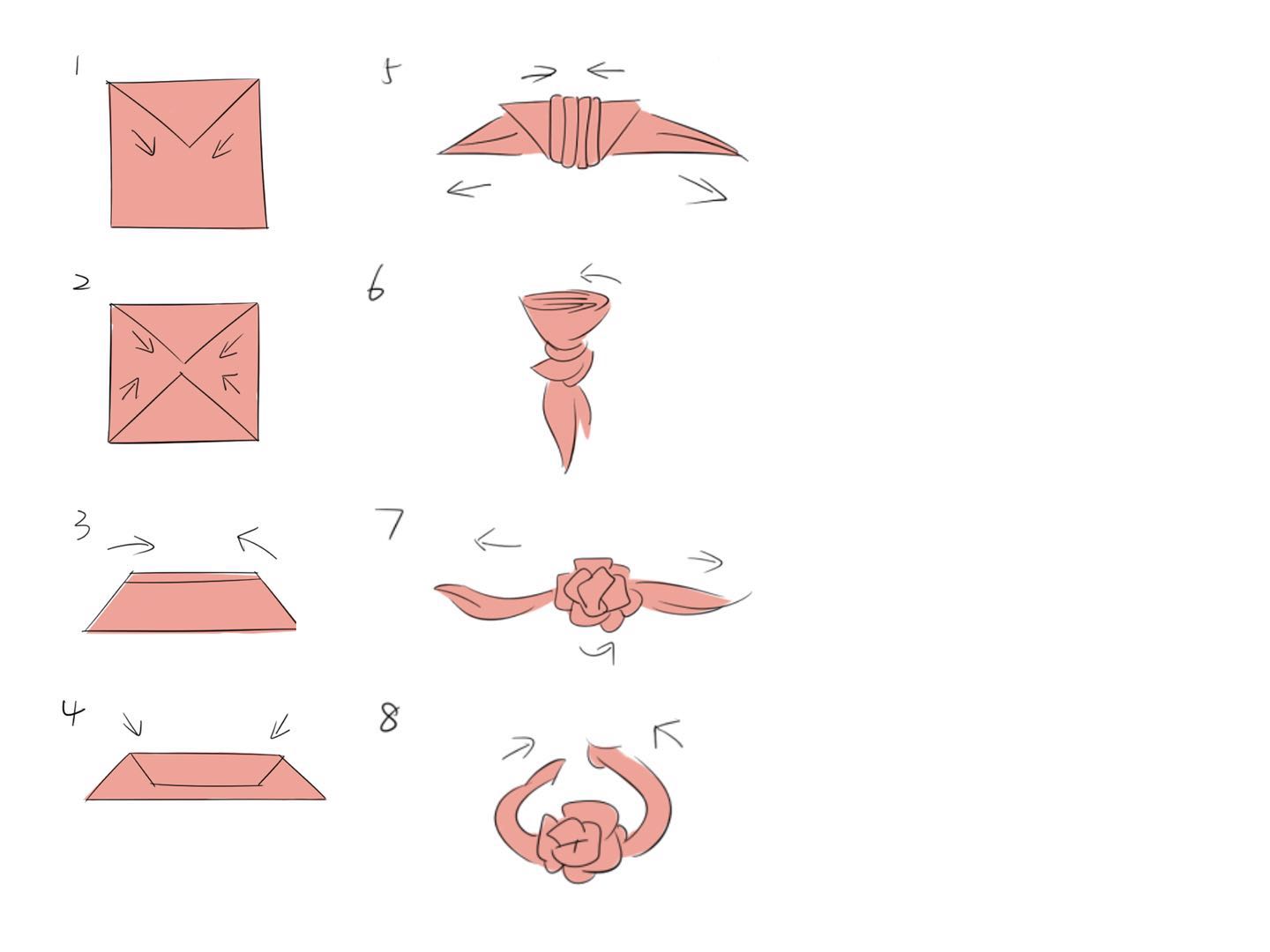 7.方巾打成结,成玫瑰花型
