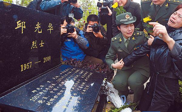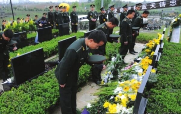 【安葬】安葬就是埋葬,意为人死后埋葬及葬骨骸等仪式,多用于比较郑重的场合,比如给烈士安葬,如上图所示。