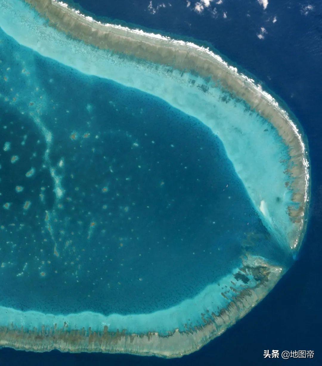 黄岩岛在涨潮时大部分地方在海面下,海面上最高海拔约1.8米。如果把黄岩岛四周填高沙石,中间潟湖停泊中小船只,外侧建深水大港,这画面是不是很美。