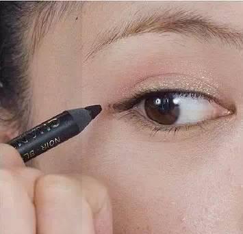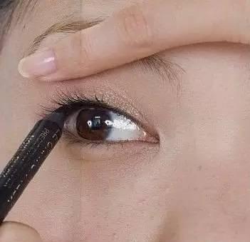 8. 画眼线。初学者建议用眼线笔,沿着眼睛上部边缘慢慢涂画,不要急,每次画一点点。记得补全眼尾的空隙。如果画错了,可以用棉棒轻轻擦掉。