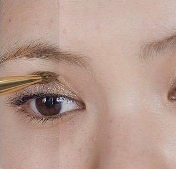 7. 上眼影。眼影刷蘸取适量眼影,轻轻刷在眼皮上。因为是淡妆,所以不要太用力,每次薄薄一层,刷几次就好。冬天建议用红、橙等暖色系眼影哦。
