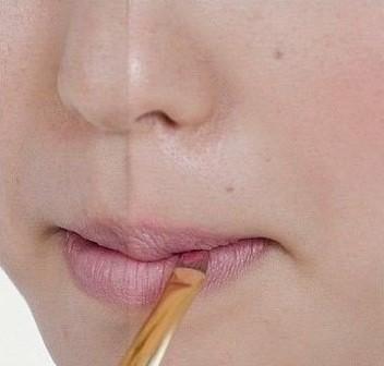 14. 涂口红/唇蜜。双唇合上的地方,用暗色画出;唇中间用略浅色画满,显得唇部饱满。如果是唇色暗的妹子,可以先涂点遮瑕提亮。