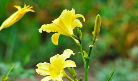 野黄花又称忘忧草、金针菜、野萱草。实是人们常食用的黄花菜的前身。为百合科多年生草本。喜生长在山坡、灌丛、河边、沟谷、林缘。其叶形流畅葱绿,丛生;花形似百合花,色彩妍丽!每年5一7月开花。具有极好的观赏价值!人们常将其挖回,植于庭院或菜园。既可赏,又可食!