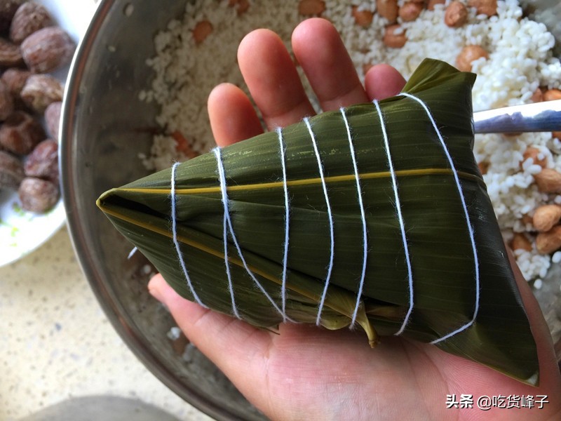 第三种方法,四角粽子,这样包法的粽子形状好看,不容易漏米,也是最常见的粽子包法之一,具体步骤如下: