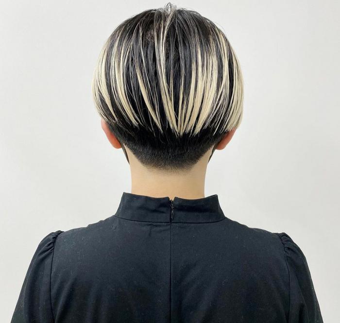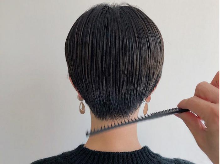 立体后脑勺短发,我们可以分成两部分来进行裁剪,第一部分就是后脑勺以下的头发,我们可以剪短去除多余的重量,使其收拢服帖。