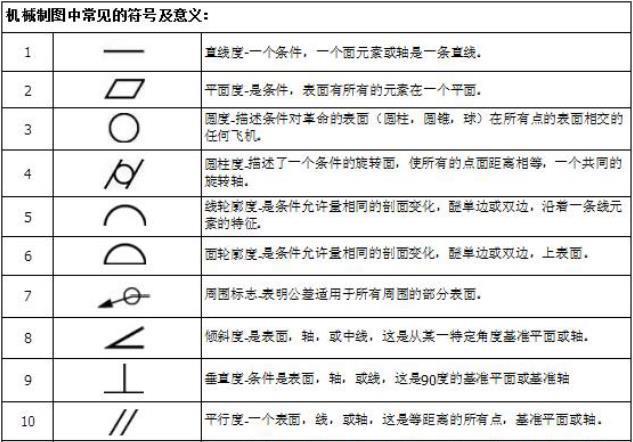 除了这些基本的理论知识,就要数图纸上的那讨人厌的符号了,接下来我们就来了解一些机械符号。