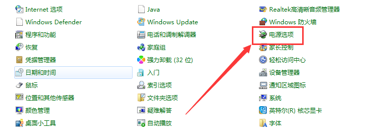 3、在控制面板里面选择“电源选项”;