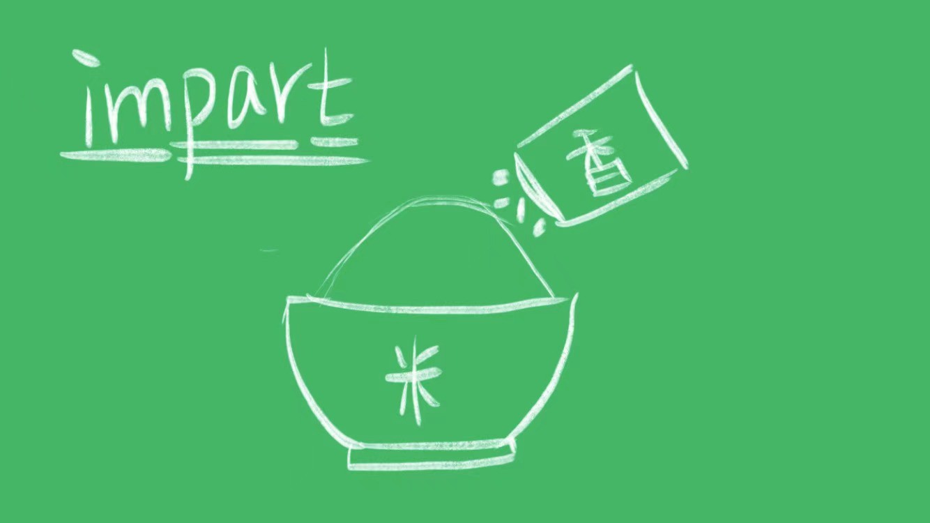 impart,向内加入使成为一部分,正式用法,动词,意思是告知某人某个信息,赋予某物某种特质、味道或感觉。