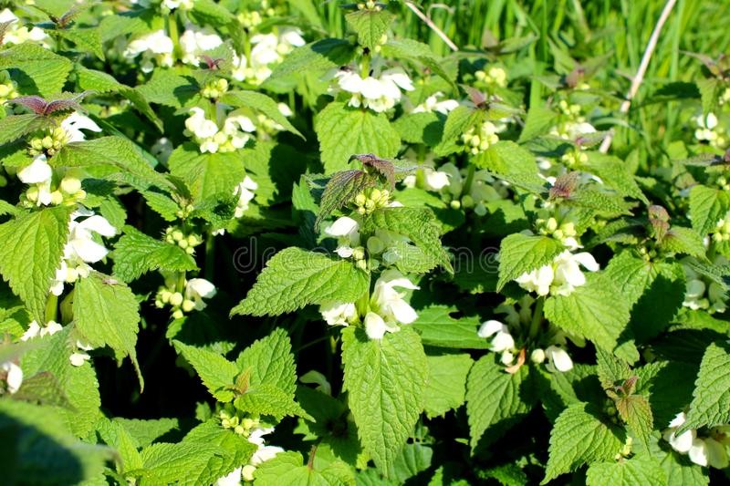 英国沙马歇特地方的人, 称白色野麻花为树荫下的亚当与夏娃。因此在花瓣的金冠下,有一对宛若亚当和夏娃的黑色和金黄色的雄蕊。所以白色野 麻花的花语是-相爱。