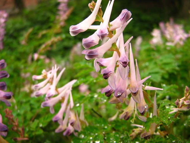 延胡索有个小名叫做“大地之雾”,大概是因为它茂密的绿意,看起来就像平地升起的雾一般吧!即使是在大太阳的晴天里也有雾,简直就是幻想的光景,因此它的花语是“幻想”。