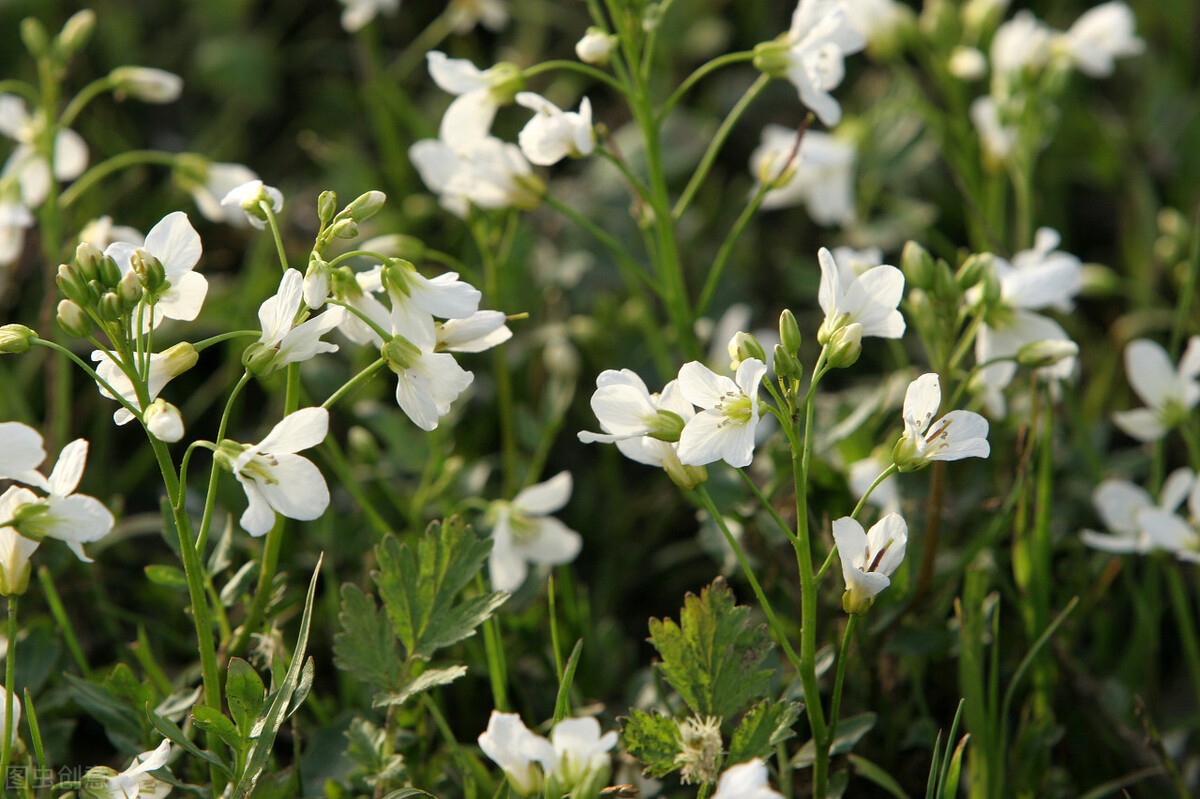 碎米荠是非常有趣的花。一旦果实成熟便一下子绷开向外散播种子。由于它传播种子的情形十分积极,因此它的花语是“热情”。