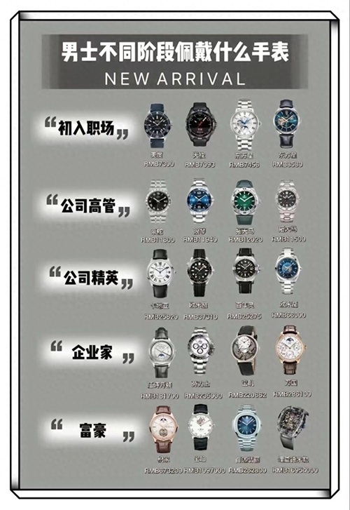 奢侈品手表是男士穿搭很重要的单品,不仅仅只是作为一个搭配,更重要的是可以提升整个人的气质和我们自身的魅力,而且腕表在一定程度上也代表着身份和地位,一起来看看男人不同阶段都戴什么腕表吧!