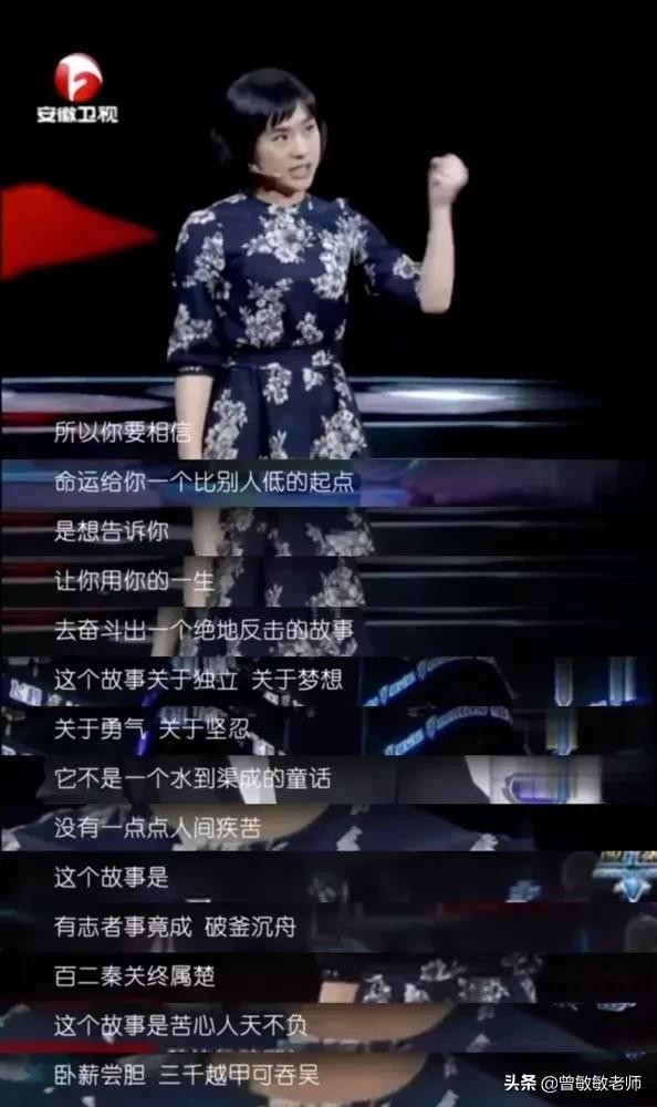 后面的故事发展也如出乎意料。在总决赛的现场,她以一场“寒门贵子”的演说燃爆现场,她把自己贫苦的身世,和求学之路的艰辛经历娓娓道来。观众都被她激情饱满的演讲内容打动了,对这个坚强的年轻女孩大加赞赏。