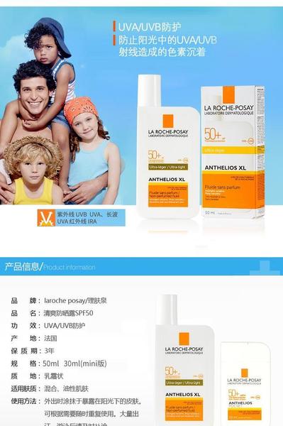 理肤泉可以说是欧美防晒界的典型代表,这款大哥大防晒是中国粉丝给他起的外号,瓶身设计比较有个性,spf50的防晒值,UVA/UVB防护,乳霜状,比较清爽,适合混合皮或者油皮,但是夏季我觉得干皮也可以,防护力全面。