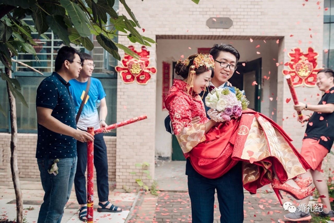 ① 新郎把新娘抱出门后