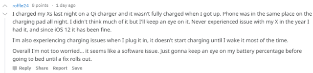 虽然目前这个故障的原因还没有得到官方确认,但结合前段时间iPhone Xs /Xs Max机型降价消息,国内有很多网友都在借着十一出游的机会准备入手新机。只能说,充电bug来得真不是时候,但已经入手新iPhone甚至更新过iOS 12的小伙伴,建议多留心自查,出现问题及时解决。