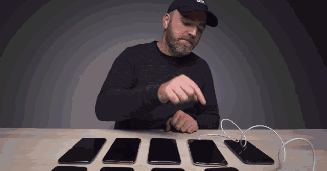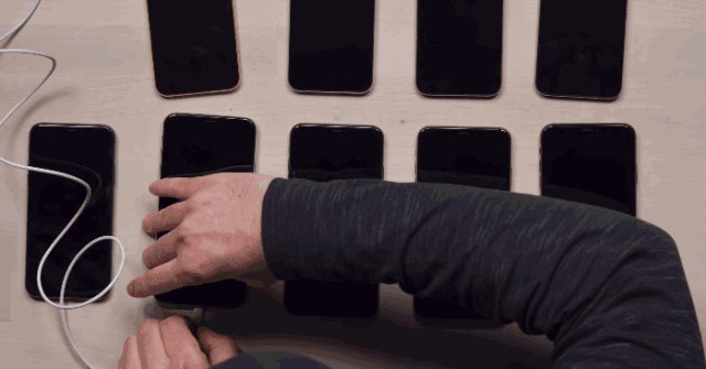 数码博主Unbox Therapy在Youtube上发布了一则 Lightning充电测试视频,视频中的测试设备一共有9台,包含4台iPhone XS、4台iPhone XS Max和一台iPhone X。
