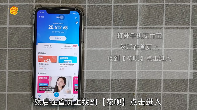 1、打开手机支付宝,然后在首页上找到【花呗】点击进入;