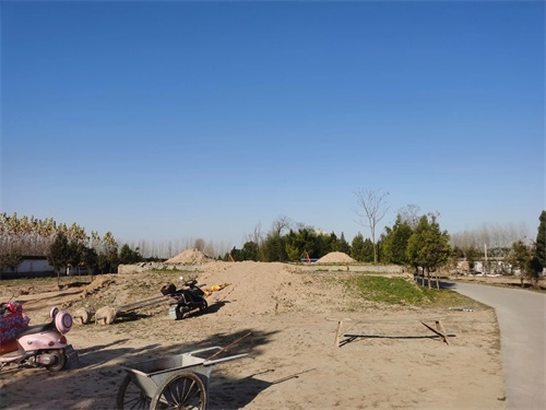 目前,华佗墓园周边的道路已经修建好。园内其他的大多数地方还在修建之中,园内有工人正在作业。