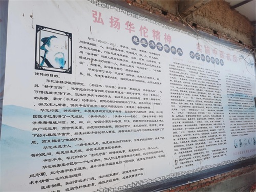 华佗墓墓高4米,占地360平方米。墓呈椭圆形,前有清乾隆十七年(公元1752年)立石碑一通,楷书:“汉神医华公墓”。